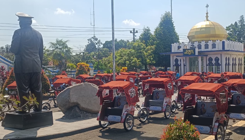 Program bantuan ini bertujuan meringankan beban kerja para penarik becak berusia 60 tahun ke atas.