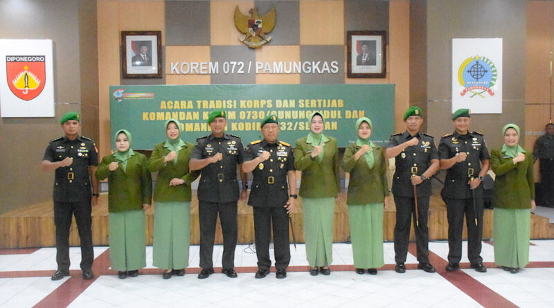 Komandan Korem (Danrem) 072/Pamungkas, Brigjen TNI Bambang Sujarwo, S.H., M.Sos., M.M., memimpin Upacara Tradisi Korps dan Serah Terima Jabatan (Sertijab) Komandan Kodim (Dandim) 0730/Gunungkidul dan Dandim 0732/Sleman. Acara berlangsung di Aula Sugiono Makorem 072/Pamungkas, Kamis (18/12/2024).
