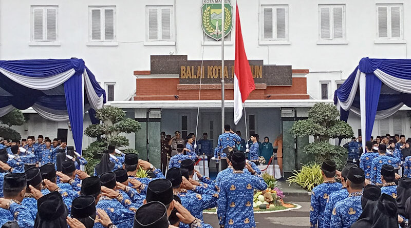 Wali Kota Madiun memimpin apel peringatan Hari Ulang Tahun (HUT) ke-54 Korps Pegawai Republik Indonesia (Korpri) pada Rabu (3/12). Dalam kesempatan itu, ia menegaskan kembali pentingnya netralitas, integritas, dan etika bagi seluruh Aparatur Sipil Negara (ASN). Wali Kota menekankan bahwa Korpri harus menjadi “rumah” bagi ASN untuk berkarya secara profesional dan disiplin.