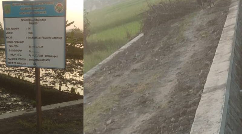 Pembangunan Tembok Penahan Tanah (TPT) Di dusun Mojo desa Sember Rejo kecamatan Pandaan Kabupaten Pasuruan kembali disorot.