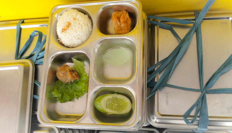 Saat mengecek langsung di lokasi bersama humas sekolah, awak media mendapati isi satu ompreng (wadah) makanan berisi: