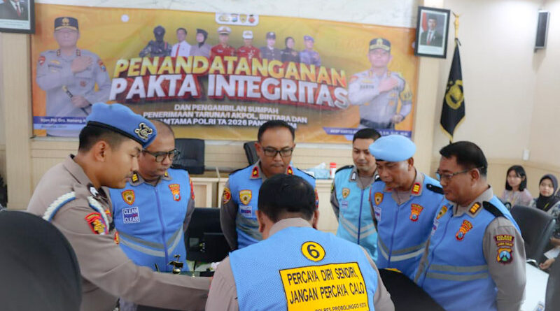 Polres Pasuruan menegaskan komitmennya dalam mewujudkan proses penerimaan anggota Polri Tahun Anggaran 2026 yang bersih, transparan, akuntabel, dan humanis melalui pelaksanaan pakta integritas.