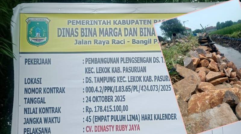 Proyek pembangunan plengsengan (tembok penahan tanah) di Desa Tampung, Kecamatan Lekok, kembali menjadi sorotan publik. Proyek yang dikerjakan oleh CV Dinasty Ruby Jaya dengan nilai kontrak Rp 178.415.100,00 ini justru memantulkan tanda tanya besar mengenai kualitas pengerjaan dan keseriusan pengawasan, alih-alih menghadirkan manfaat bagi masyarakat.