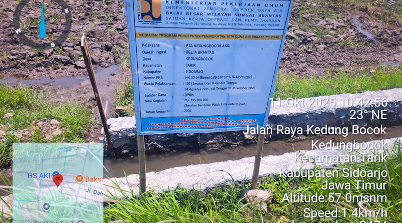 Program Percepatan Pembangunan Tata Guna Air Irigasi (P3TGAI) dari Balai Besar Wilayah Sungai (BBWS) Brantas, APBN Tahun 2025, di Desa Kedungbocok, Kecamatan Tarik, Kabupaten Sidoarjo, Jawa Timur, diduga menjadi ajang “bancakan”. Dugaan ini melibatkan mulai dari Kelompok Masyarakat (HIPPA) hingga Kepala Desa setempat.