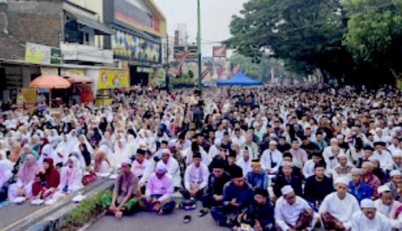 Ribuan jamaah memadati Jalan Nasional di Kelurahan Karangjati, Kecamatan Pandaan, Kabupaten Pasuruan, pada Minggu pagi (14/12/2025). Mereka datang dari berbagai daerah, termasuk Kabupaten Sidoarjo, Mojokerto, Malang, serta warga sekitar Pasuruan.